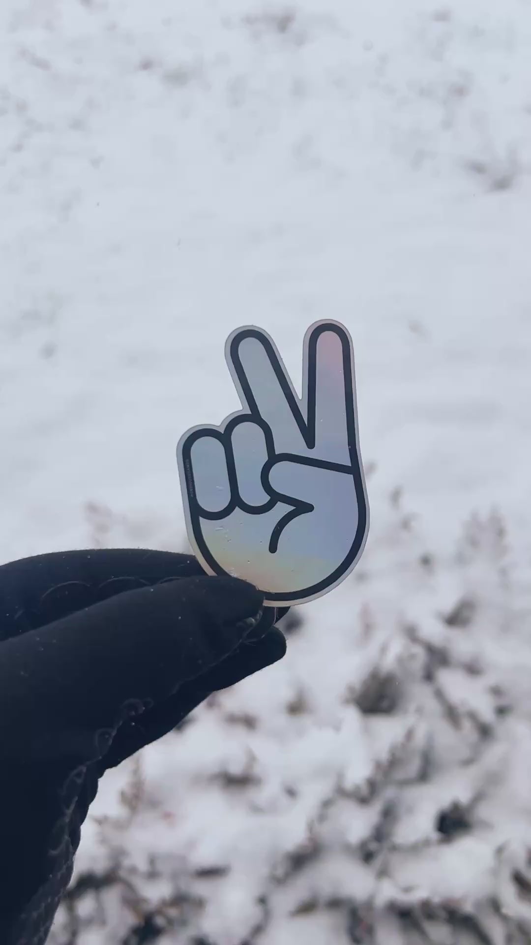 Spread the peace and love on the mountain with this holographic peace sign sticker!