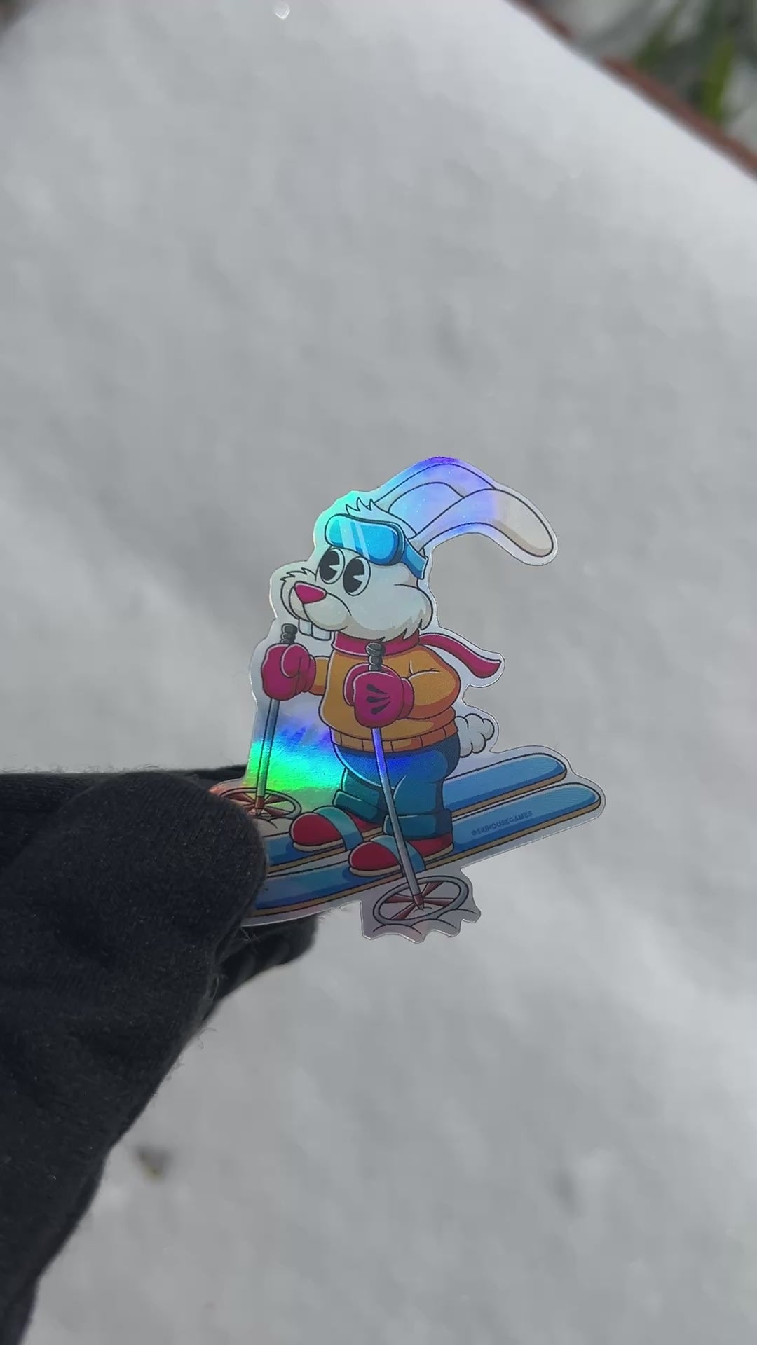 Unleash your adventurous side with the Ski Bunny holographic ski helmet sticker! Featuring a bold and dynamic holographic ski bunny character, this sticker will add a touch of challenge and excitement to your ski gear. Stand out on the slopes and let the fearless ski bunny guide you on your next daring ski adventure!