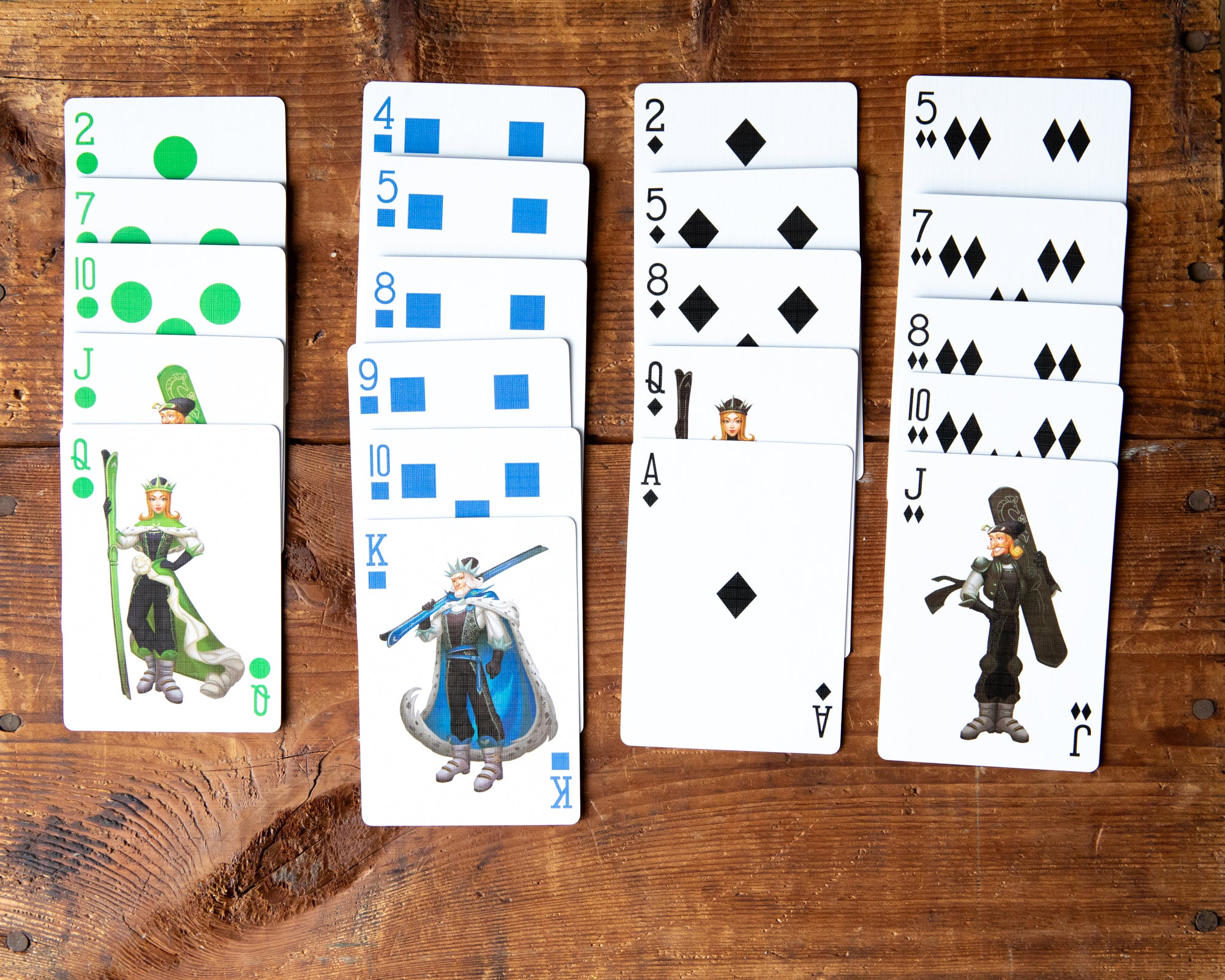 Objective: The object is to build 4 trails, one for each of the suits with the highest score possible.
