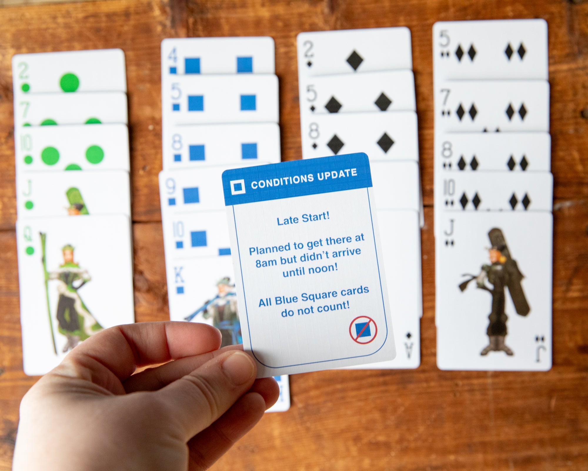 - If you draw a card that is not higher than any opponent's cards, you can keep that card and now your trail's highest value is reset to that card. (If you have a 3 of blue square, and it's lower than all other players blue squares, then you get to keep it and your top trail card is now reset to 3).